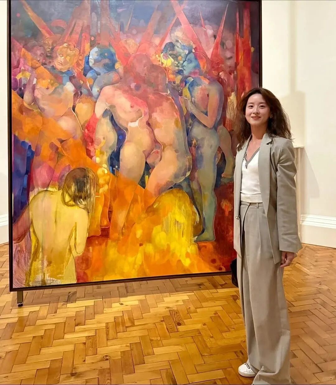 看展的时候,章泽天脸上的神情格外专注,似乎对这些艺术品很感兴趣,旁边还有专人为她讲解。章泽天本人也在社交账号上晒出看展照片,她穿着一套灰色西装,站在一幅画作前留影纪念,卷发衬得她的脸蛋更为小巧。看她笑意盈盈的模样,整个人少女感十足,完全看不出是孩子妈。